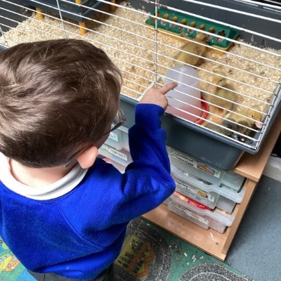 We have had a very busy half-term. We have been learning all about animals, minibeasts, habitats and lifecycles. At the start of this topic we learnt about how to take care of a plant and the lifecycle of one. We then all planted our own sunflower seeds and took them home to care for. We have had some very special visitors in our classroom this half-term. We have had duckling eggs! We have learnt about the lifecycle of a duckling and how to care for them. We even managed to see some of the ducklings hatch out of their eggs. The children have loved looking after the ducklings in our classroom and will be sad to see them go. In addition to the ducklings, we also have some caterpillars which we are observing to see what happens.