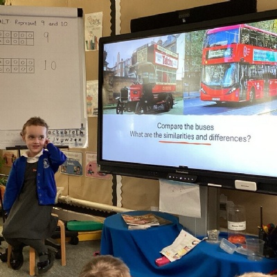 The children in Maple and Rowan class have thoroughly enjoyed the topic, 'We're on the move'. Each week we have been learning about different modes of transport. We have learnt about, cars, buses, planes, rockets and boats. Each week we have compared a modern vehicle to one from the past. During this topic, we had an exciting trip to the library. We rode in a minibus to the town centre to visit our local library. We listened to a story from the librarian and completed fun activities, we also have to opportunity to get a library card and take our first book home.